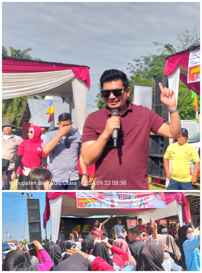 Pada sambutannya, Wakil Bupati Bengkulu Utara menyampaikan ucapan terimakasih kepada masyarakat yang telah menyambut kehadirannya dengan meriah. Wakil Bupati juga meminta agar masyarakat tetap kompak dan tidak terprovokasi untuk memilih kotak kosong pada Pilkada 27 November 2024 mendatang. Wakil Bupati Bengkulu Utara tersebut menghimbau agar tetap menjadi pemilih cerdas, jelas orangnya, jelas pengalamannya dan jelas pula program kedepannya.