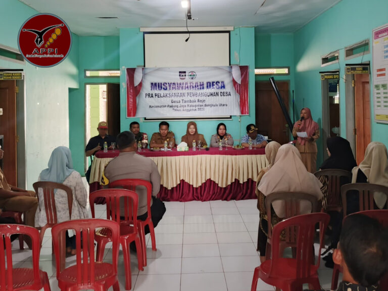 Melalui musyawarah ini, diharapkan seluruh rangkaian pembangunan di Desa Tambak Rejo dapat berjalan lancar, tepat waktu, serta memberikan manfaat nyata bagi peningkatan kesejahteraan masyarakat setempat. (APPI)