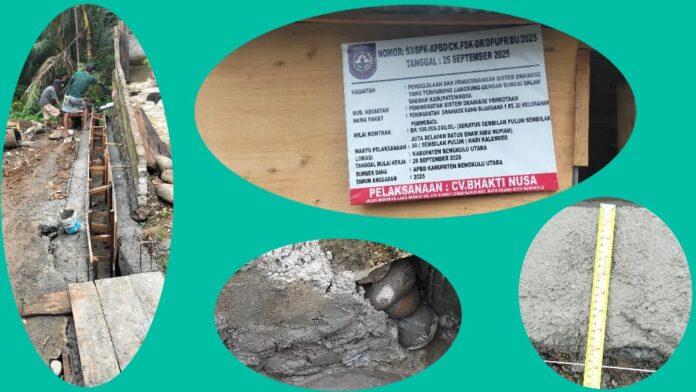 DP, Bengkulu Utara – Pekerjaan proyek peningkatan Drainase di Gang Bijaksana 1, RT 20, Kelurahan Purwodadi, menuai sorotan. Pejabat Pelaksana Teknis Kegiatan (PPTK), konsultan pengawas, dan kontraktor diduga lalai hingga menimbulkan kejanggalan pada proses pembangunan.