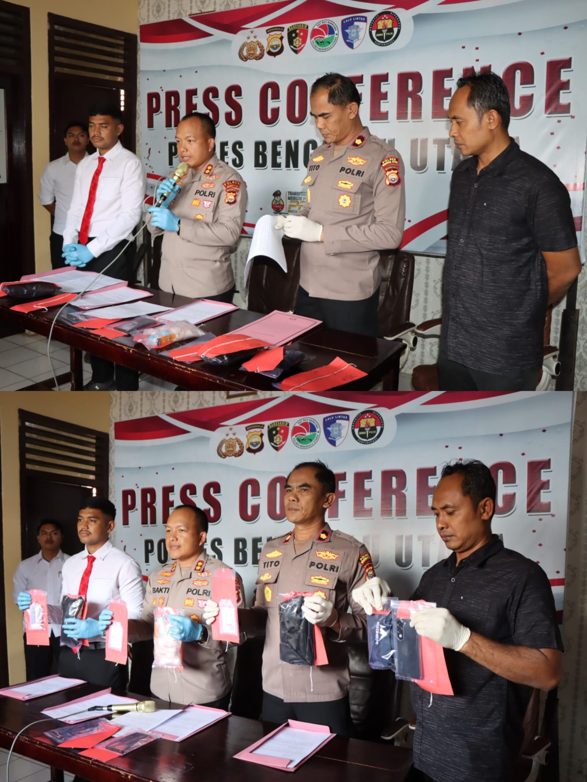 Rilis pengungkapan kasus tersebut dipimpin langsung Kapolres Bengkulu Utara, AKBP Bakti Kautsar Ali, didampingi Wakapolres Kompol Januri Sutirto, Kasat Resnarkoba Iptu Andi Gibran Gani Mandica, serta Kasi Humas Iptu Edi Permana.